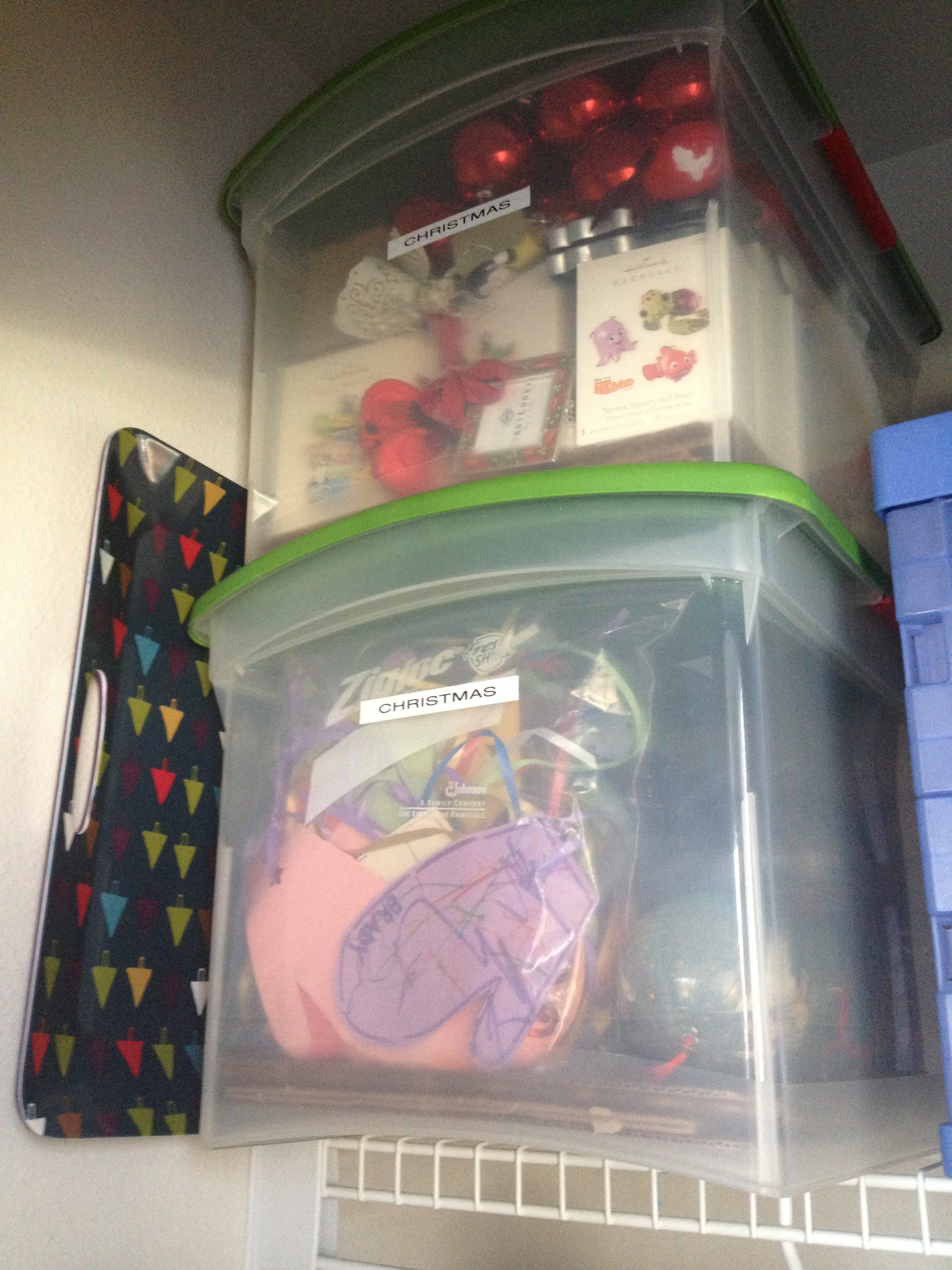 Each winter break, I sort through all of our items–especially our well-used Christmas decorations and ornaments–to see what I still have and what I need for the upcoming year.  By setting a regular sorting date, you’ll be more likely to keep tabs on everything you have, stick to your system, and keep your gifts and budget on track.
