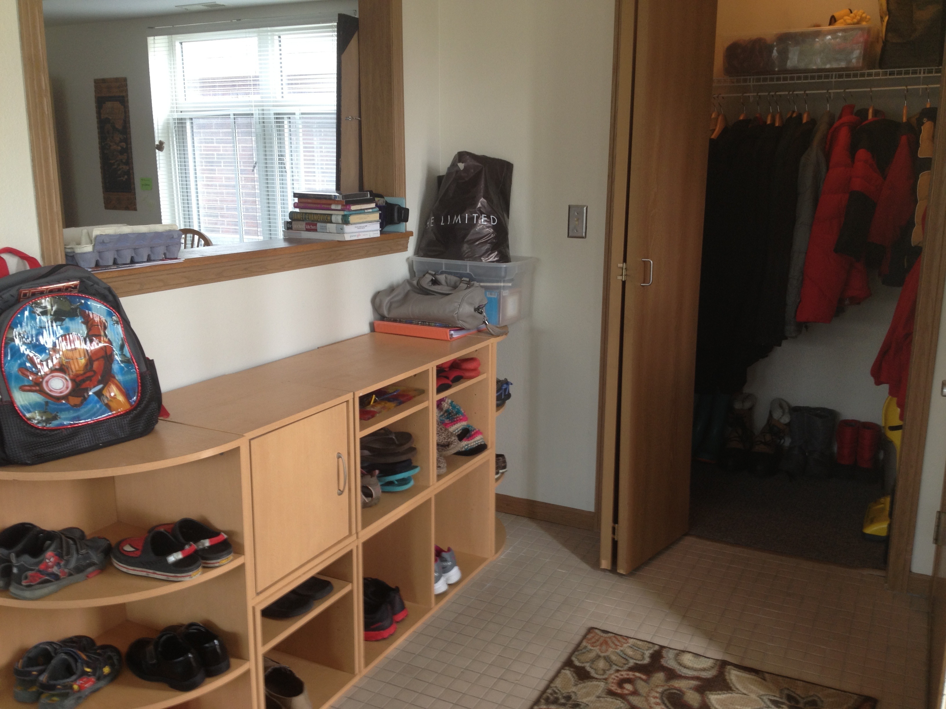 This may be the best tip yet: Keep kids’ items, especially shoes and socks, at the Home Entrance. When kids learn to put their items away regularly, they can always find their basics. And by keeping shoes at the front entrance, your house will stay significantly cleaner. We also have our kids store their school and daycare items at the Home Entrance, helping us to ensure they’re always prepared for their day.