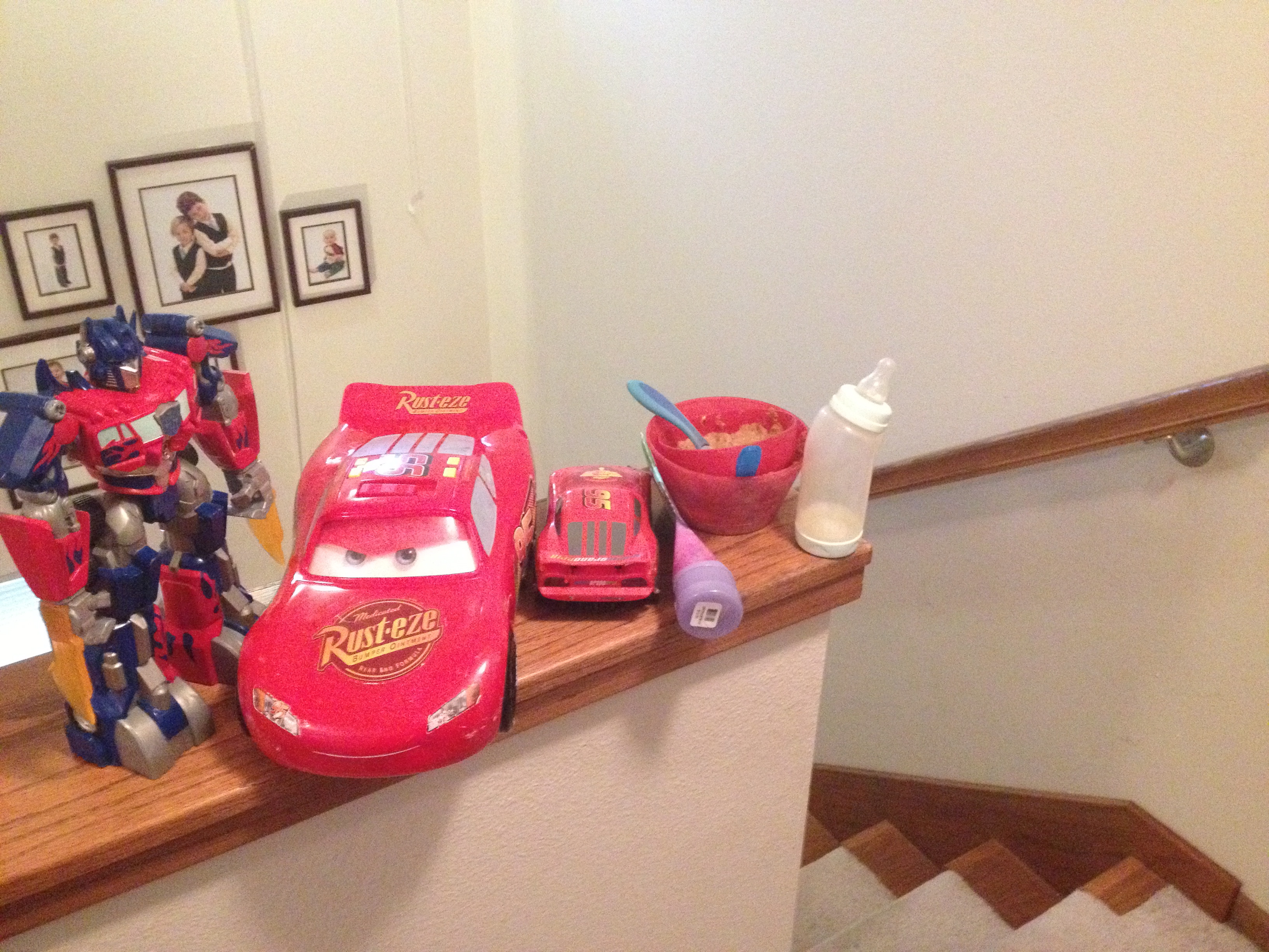 This is my childrens’ clean laundry and a few of their toys. I kept meaning to put it away, but kept forgetting. Then I put it in front of their cabinets so I couldn’t reach their stuff unless I moved their laundry out of the way. After a few times of doing this, I was fed up. And guess what? I put their stuff away right then. When you push items aside, it mentally clutters your thinking and stress begins to creep up on you. By putting it in your way, you give yourself a great reason to get it done immediately, and it saves your mind!