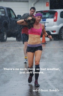 Yesterday, I forgot my running jacket.  No big deal, it was supposed to be pretty warm outside.  But when I started running, it wasn’t.  I got halfway through my run and it started to rain.  Freezing cold, big drops of rain.  And I gave up.  I debated for half a lap and confirmed–I was done.  It may not seem like much, but it is the first time in two years that I haven’t finished a run.  I’ve been on my running route more than 400 times (2000 miles) and never given up, until yesterday.  And guess what, I feel ok about it.  I was cold, I don’t like running in the rain and I was done.