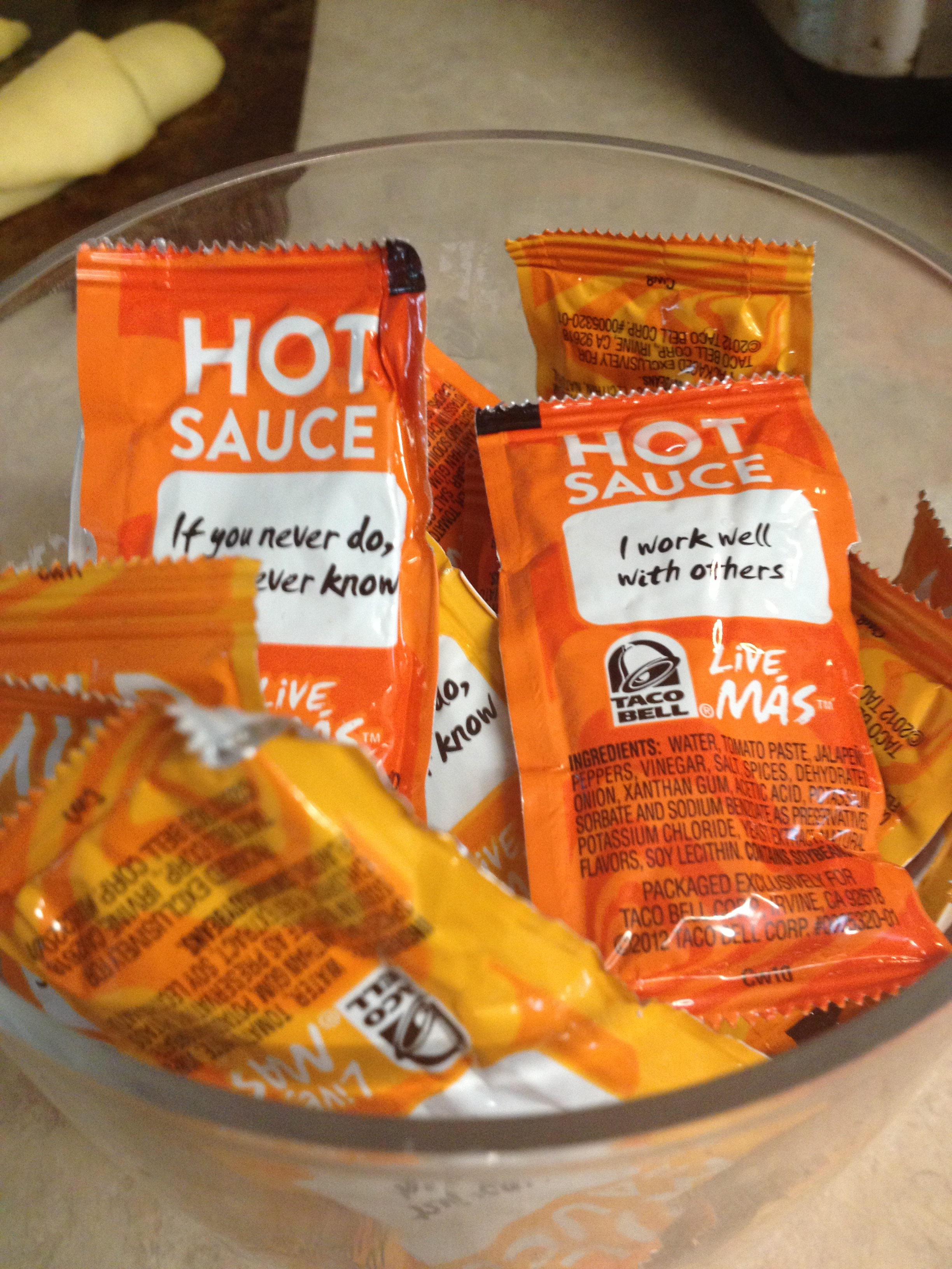 Bonus packets can give you a sweet (or spicy) bonus any day of the week. I save a few extra sauce packets with each visit to our favorite restaurants. Then throughout the week, I’m able to add some spicy flavor to my healthy dishes and my sauce is already pre-packaged in an individual, portable container. Talk about convenient! Tip! Don’t toss the extra sauce/seasoning packets if you’ve gotten too many–save them and use them later in the week for an extra spicy kick.