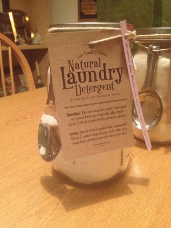 Cute packaging makes it a great gift. Store items in mason jars and add a tablespoon as trimming. Then you can easily gift this to everyone you know – especially families with small children or sensitive skin – and start them on their path to more frugal, and still wonderful laundry detergent.