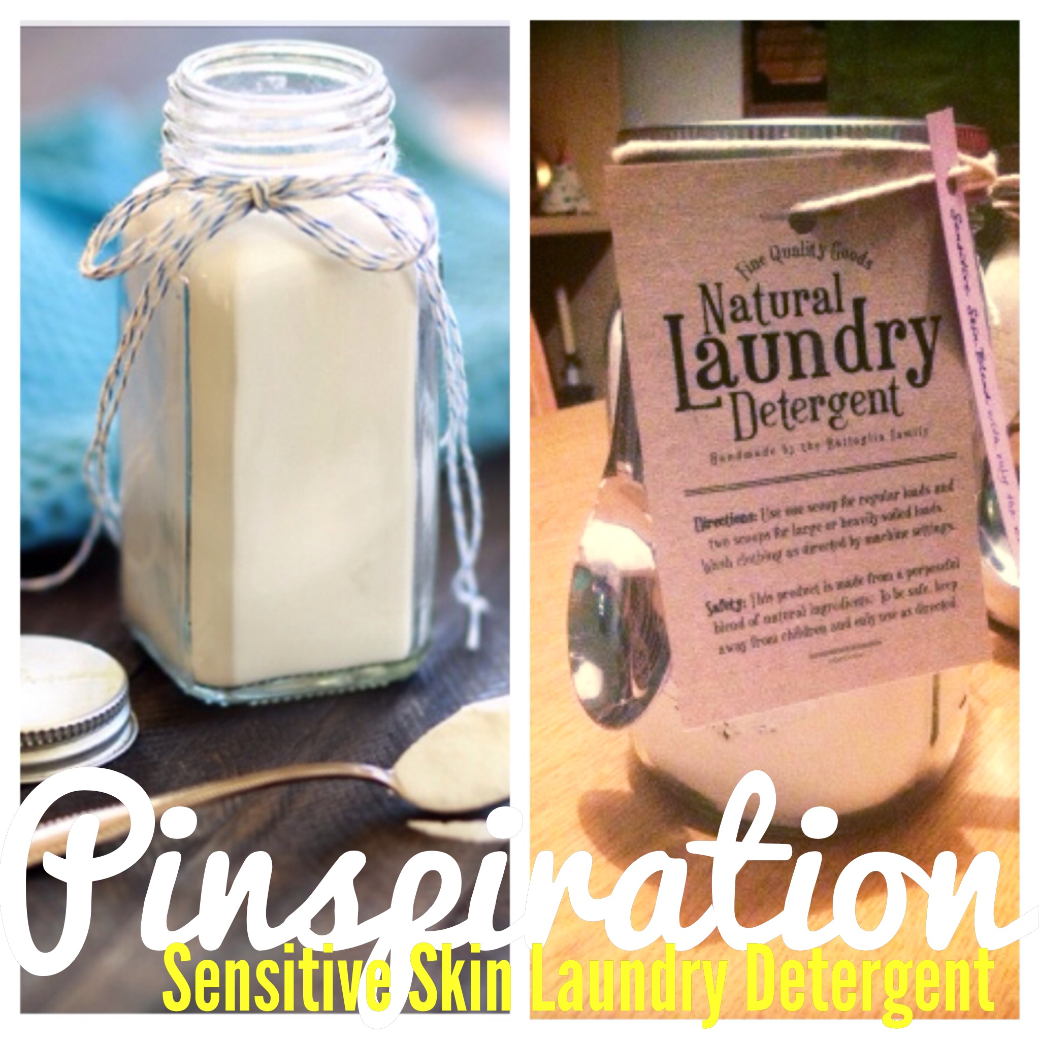 Pinspiration: Sensitive Skin Laundry Detergent. This easy, useful project can be completed in 15 minutes. And it helps save your sensitive skin, saves you money, and reduce your environmental impact (if you use liquid laundry detergent – you’re paying for them to transfer the liquid, water, to your store). I’ve made this laundry detergent for my sister many times and have given it as gifts to families with small children. This mild, hard-working detergent is fantastic, has no added perfumes, dyes or additives and is so easy to make – worth it!