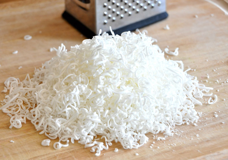 Grate your Ivory Soap. This is the part that takes the most time. I’d suggest making enough to make one bar’s worth of laundry detergent each time. You can do this during the commercials of your favorite show to help pass the time easier on this project.