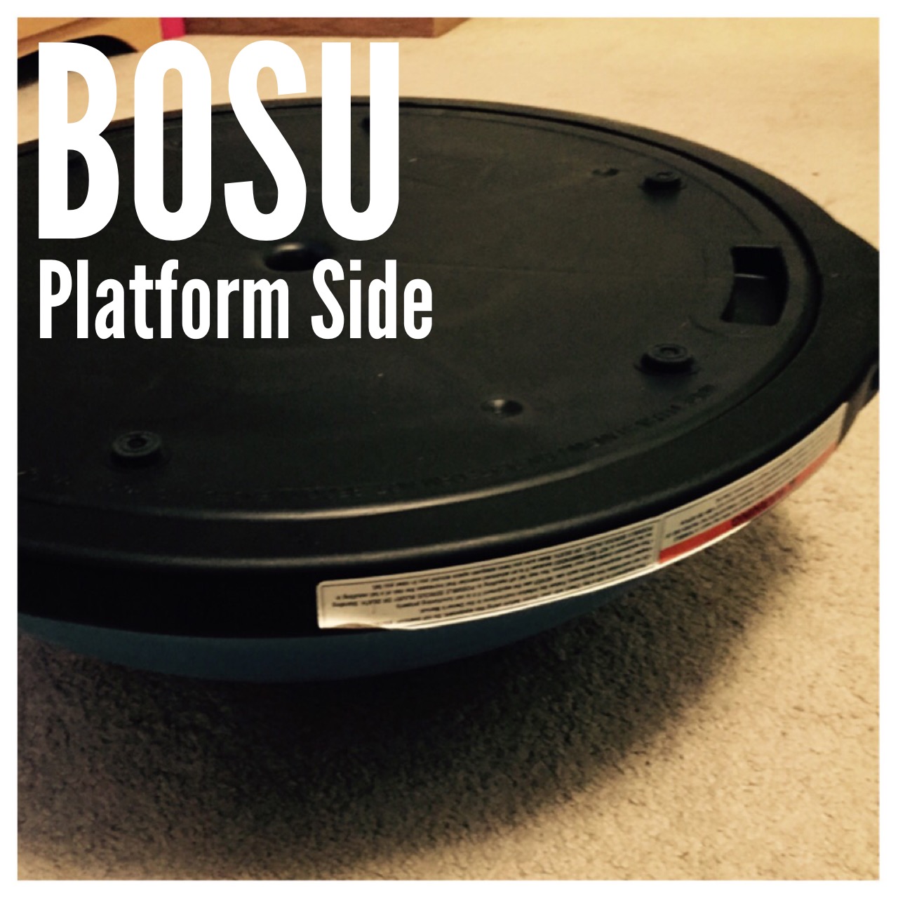- Front Shield Run: Run in place and hold the BOSU in front of you, arms at your sides with elbows bent at a 90 degree angle.