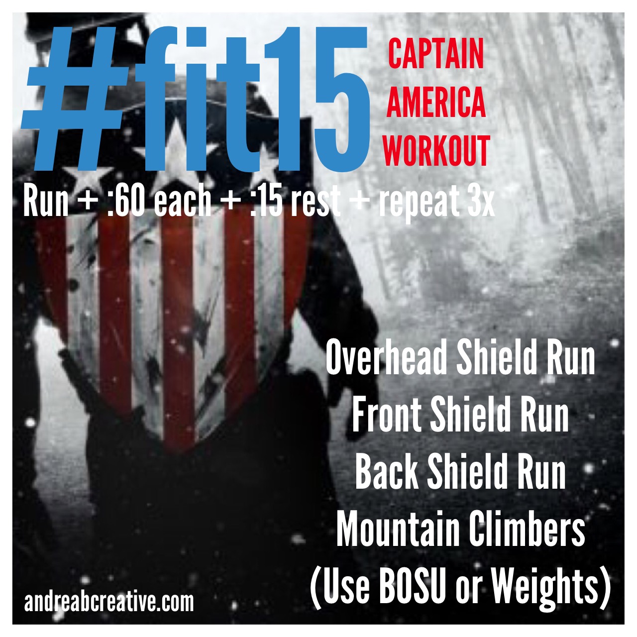 Truth time: This workout was tough – I’d expect nothing less from Captain America! It was 9 degrees outside and I realized that my morning run wasn’t happening outside. I needed to work out inside today – I love watching movies while I work out, so I picked Captain America and got inspired. I decided to run in place and used my BOSU as my Captain America shield to work my arms while I ran. I also had to take a minute rest in between each exercise, not just :15 seconds (because I am not Captain America).