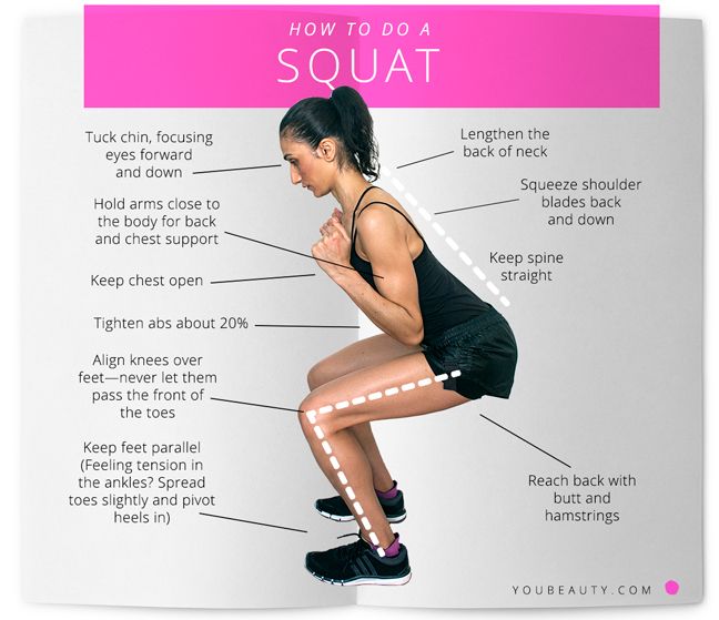 Squats Exercise: Plant your feet squarely on the ground with toes pointing forward.  Sit into the exercise and get low.  Don’t rush this exercise, it should take you the same time to go up as it does to go down.  Benefits: Squats are a great exercise to tone your butt. Remember to protect your knees by “sitting” into the squat and not letting your knees go past your heels.